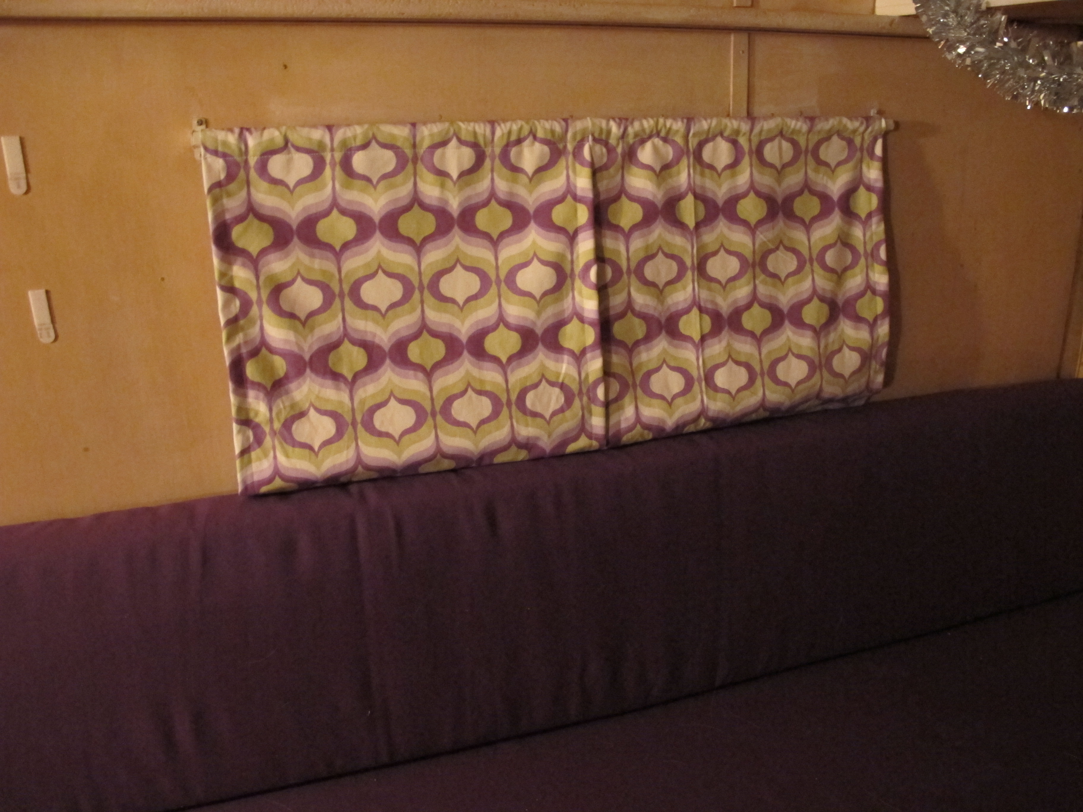 Side windowThe fabric is a little too long with the seat back up, but it needs to be long enough to cover the window when the bed is made down (see below).