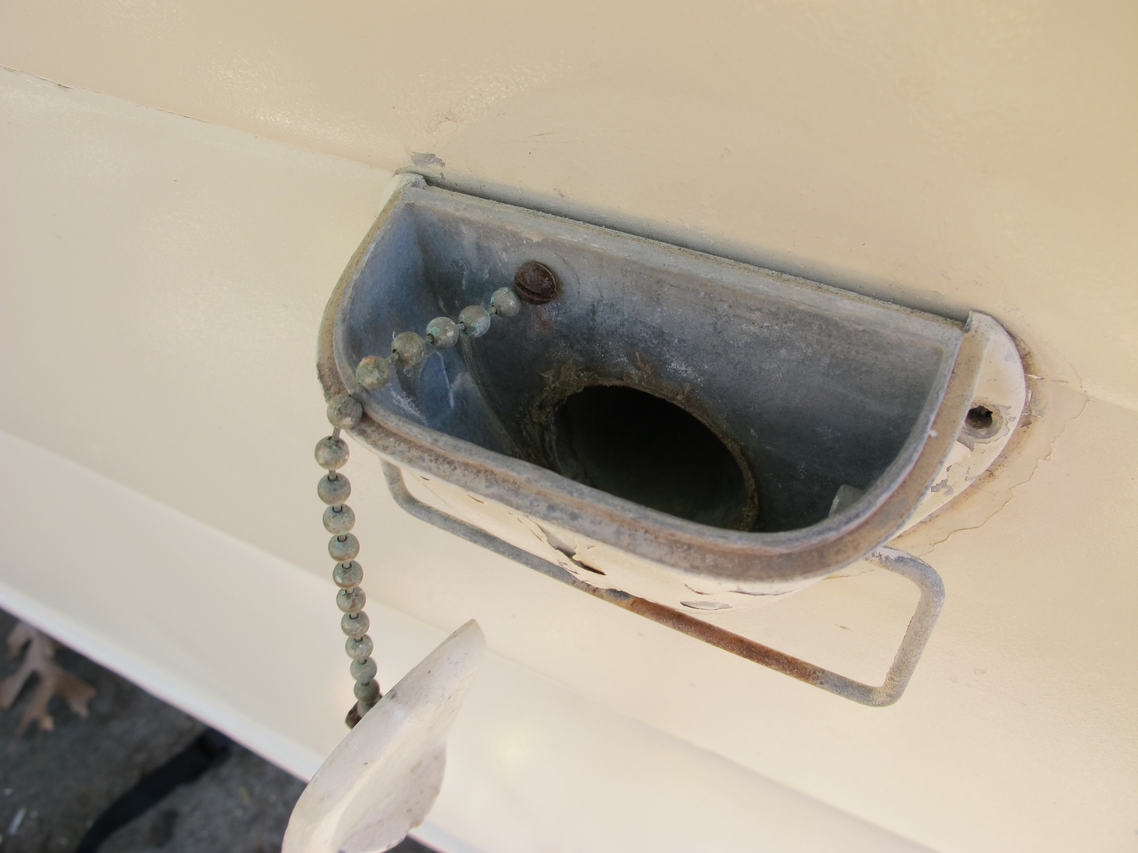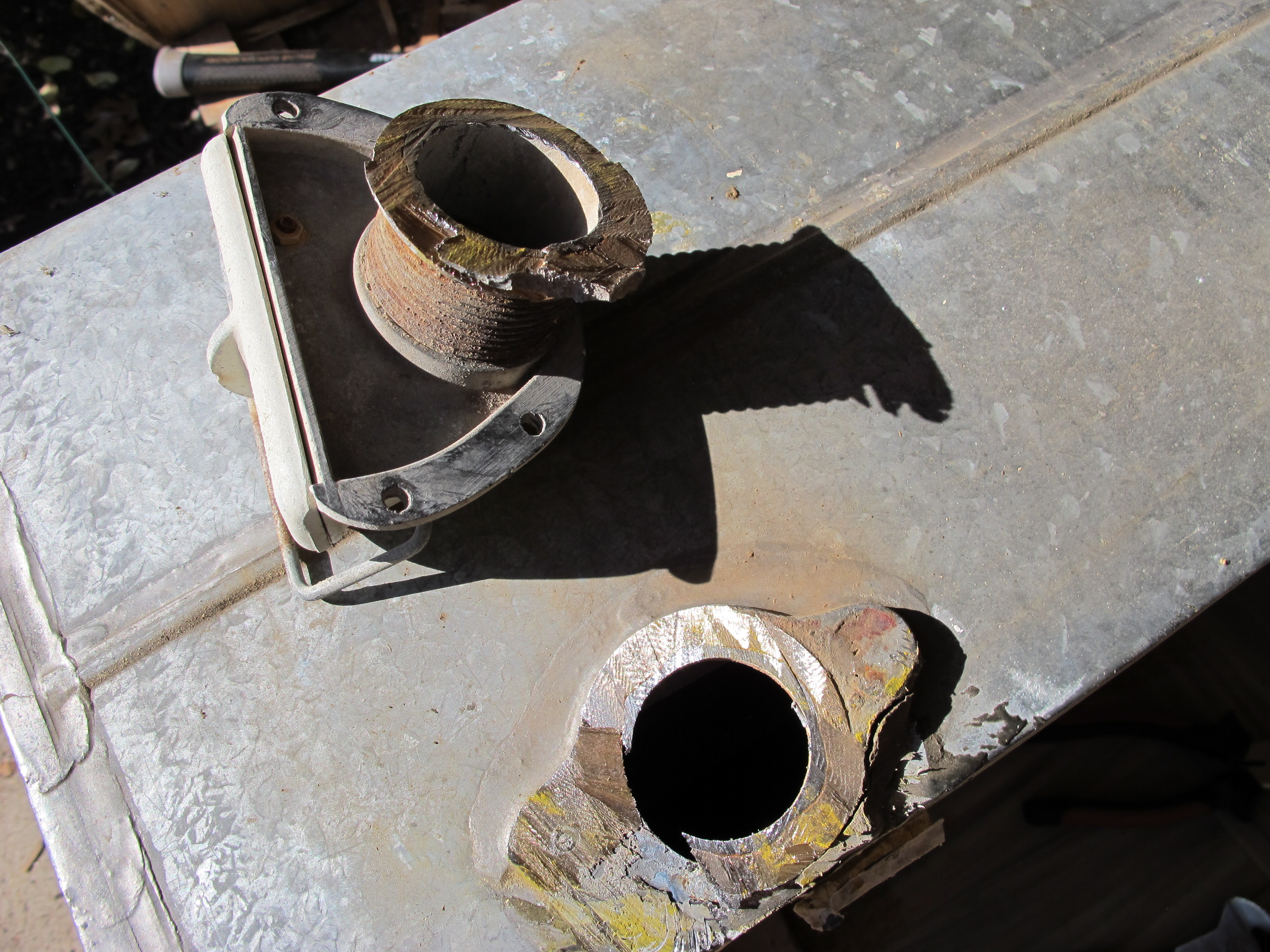Here’s the water fill and the place where it was attached. I think it was some type of copper but it’s hard to tell. It originally screwed together, but after 50 years, the metal was basically all one piece.