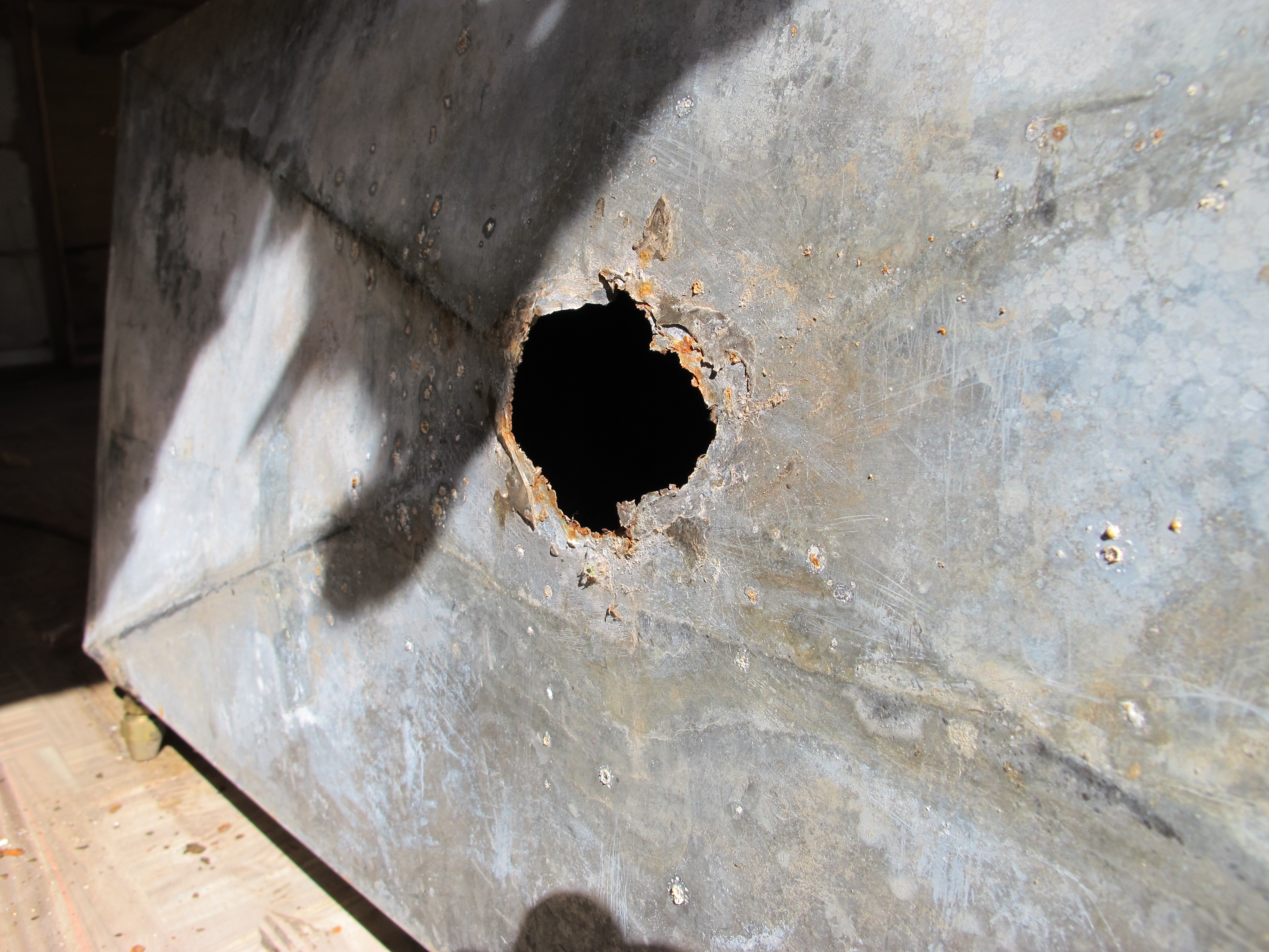 This is what the bottom of the tank looked like after I pulled off the drain spout. I thought I would need to unscrew it but it was so rusted that it just pulled off. haha No wonder it was leaking!