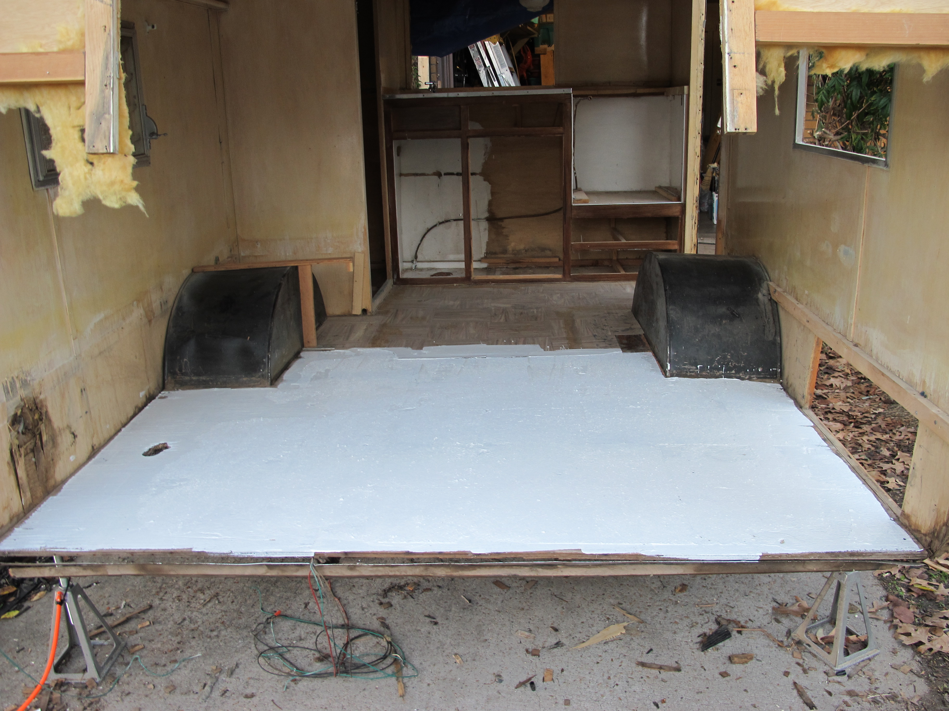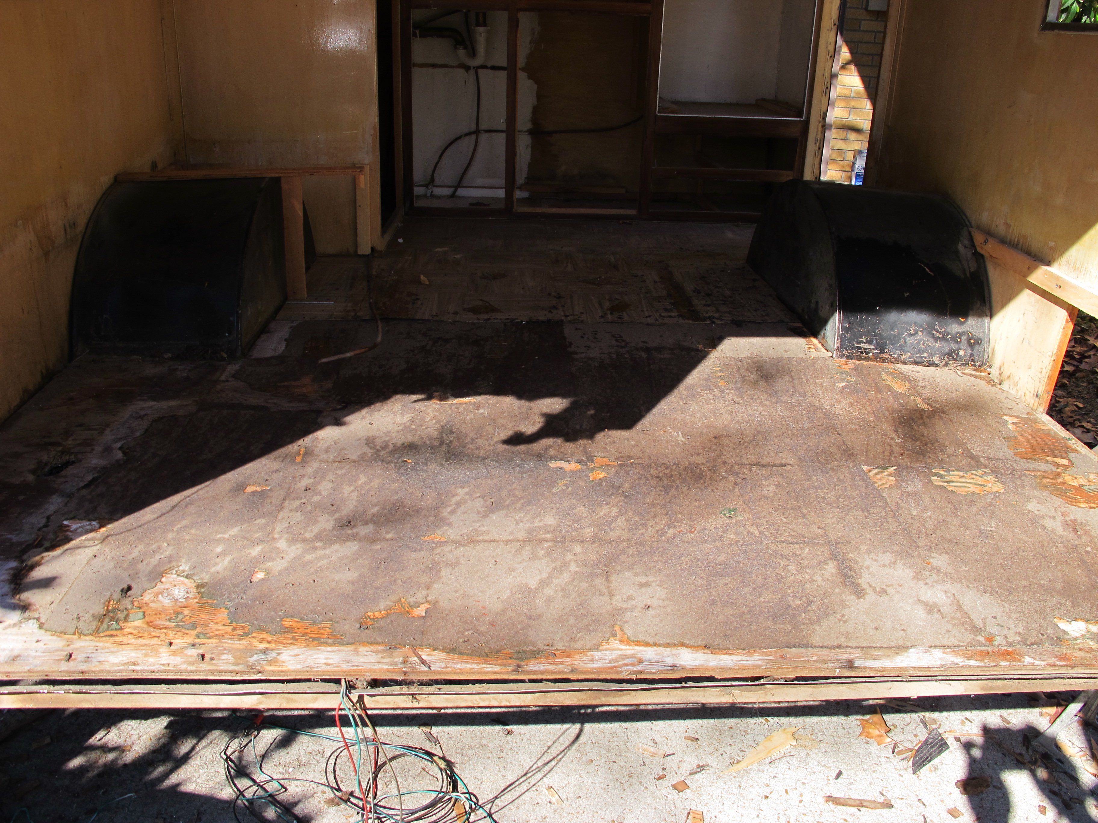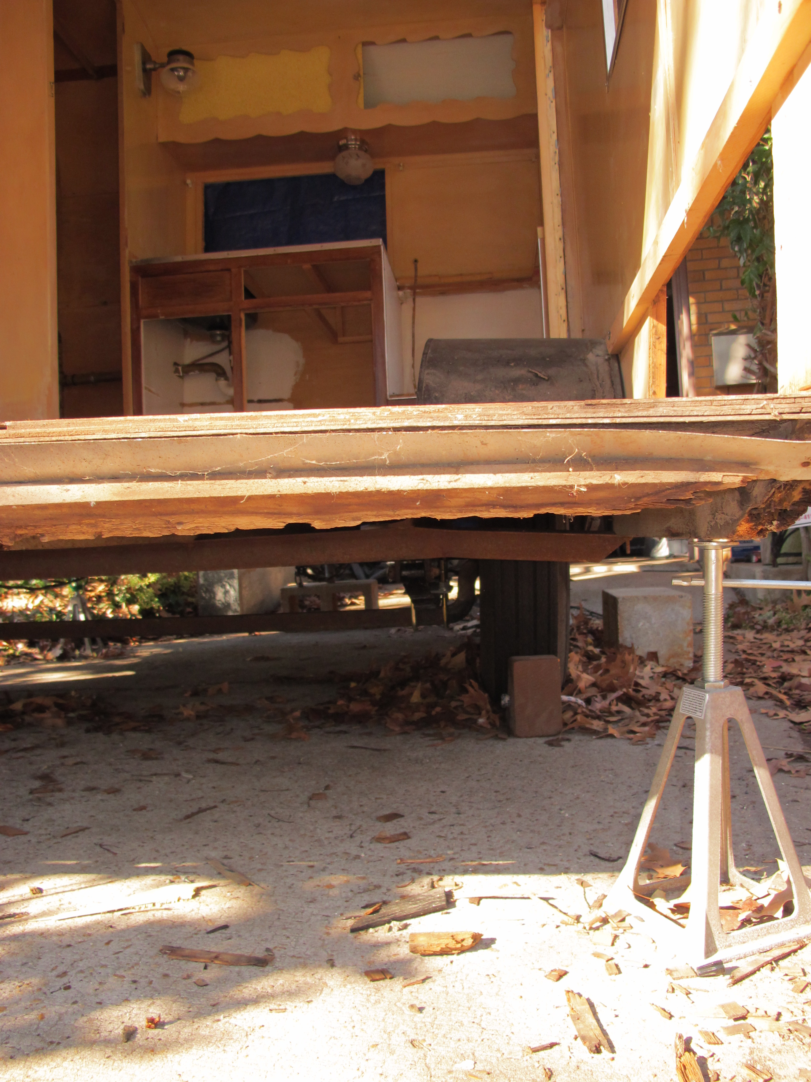 So, on Saturday, I worked hard to remove the lower skin on the curbside of Junebug as well as the rear paneling. I wanted to see how bad the wood rot was, as well as check the integrity of the floor. Luckily I didn’t find a significant amount of wood rot. I also had a welder come by the house and take a look at my frame where it is bent. He’s going to be able to make a new beam for the frame to replace the bent one. He is planning to repair it next Friday or Saturday.