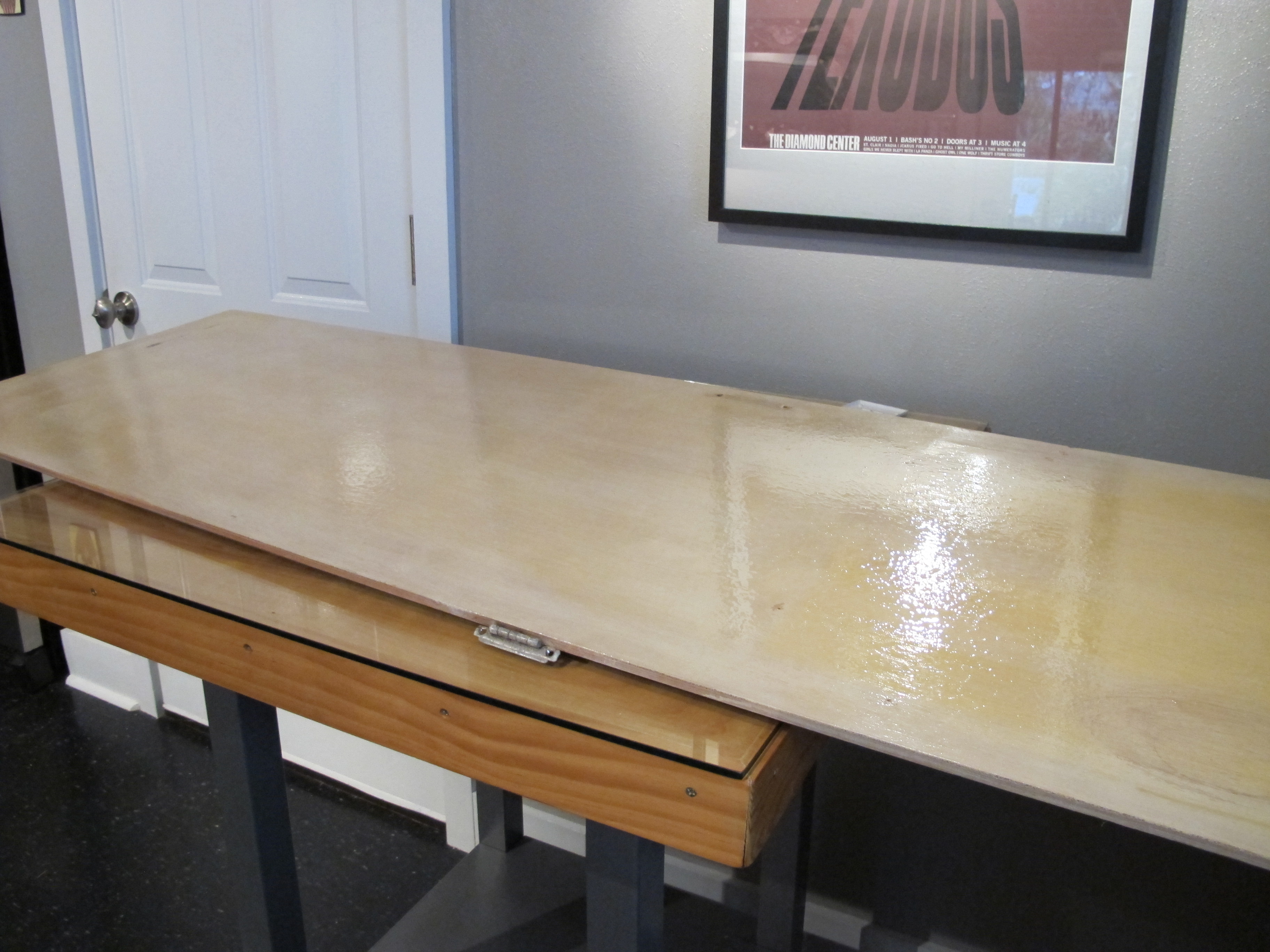 I had to clean off my workspace in the garage to make sure no sawdust got in the adhesive.  IMG_4135
