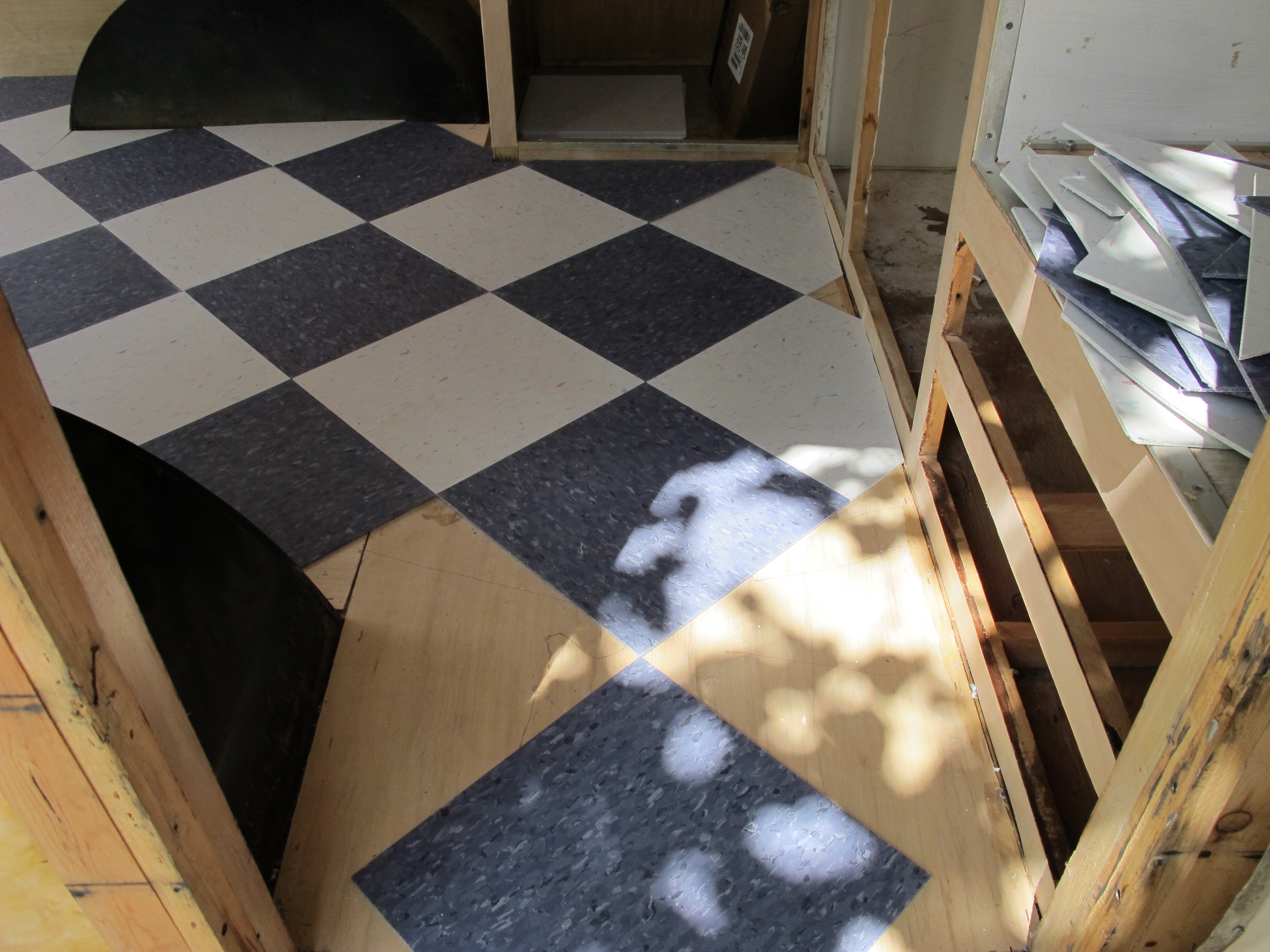 • Thanks! Cutting the tile was a bit tedious, but the good thing about it is you can see immediately how nice it will look. That helped to motivate me with that project. The same goes for the shellac, it’s a pain but it starts looking great with just a few coats and really gets me excited to finish! The parts that are the most difficult for me are the framing repairs and the undercarriage. No one will see those, so even though they have to be done, they’re not really very rewarding or fun to do. Please do show the picture to CJ if you think she’ll like it. I can always get her a little paint suit to wear although I’m not sure if they come in kids’ sizes. haha