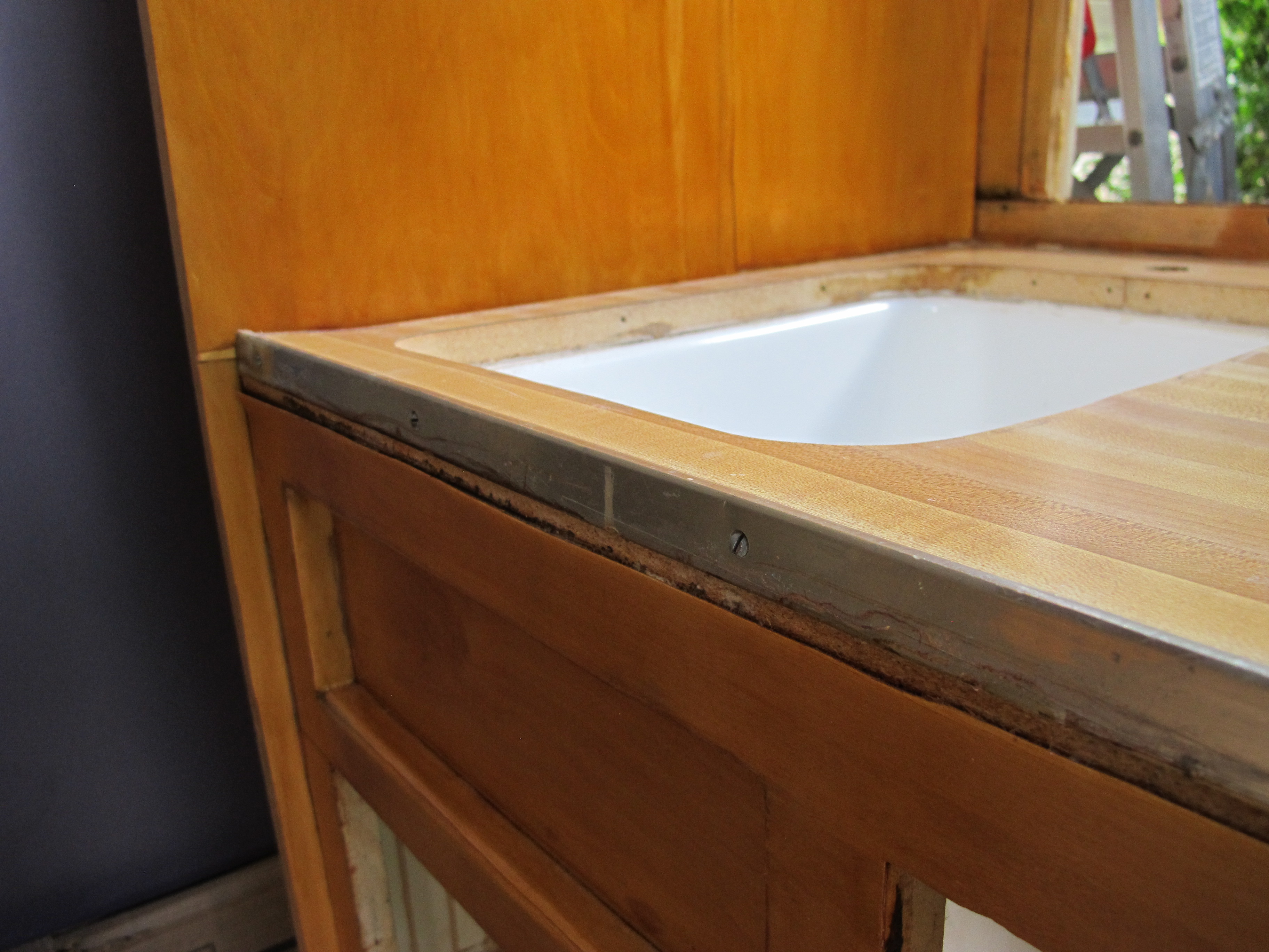 I didn’t notice the warping until today when I took the covers off Junebug to start working again. I thought about it for a bit, then decided I would just order a wider countertop trim and leave it. It’s slightly curved up at the edge, but hopefully no one but me will notice. I can always remove the countertop at a later date and replace it if it starts to bother me. I just didn’t have the energy to take on another task in addition to everything I already still have to do.