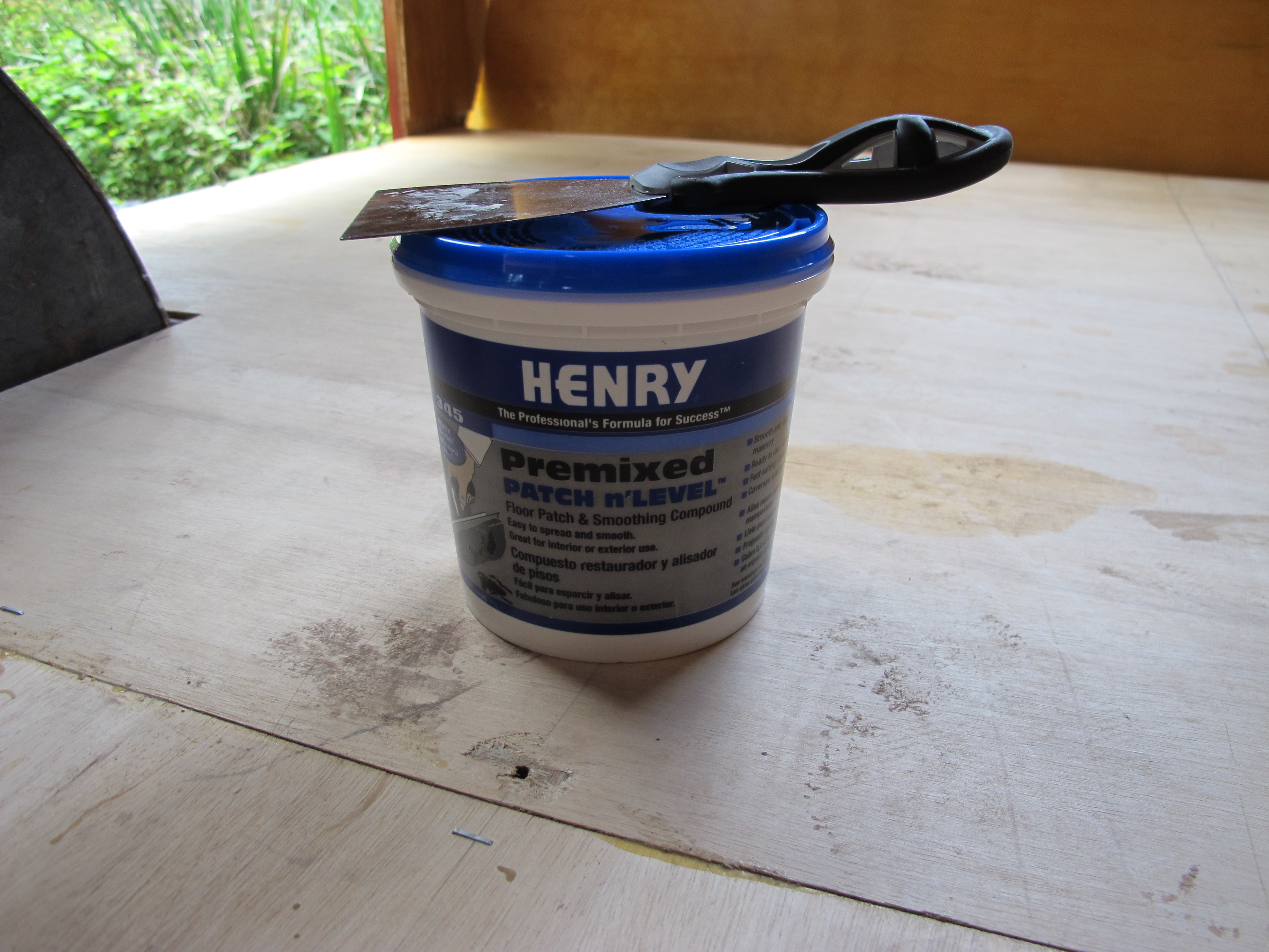 Before putting down the tile adhesive, I had to fill in a few cracks around the edges with this sealant.