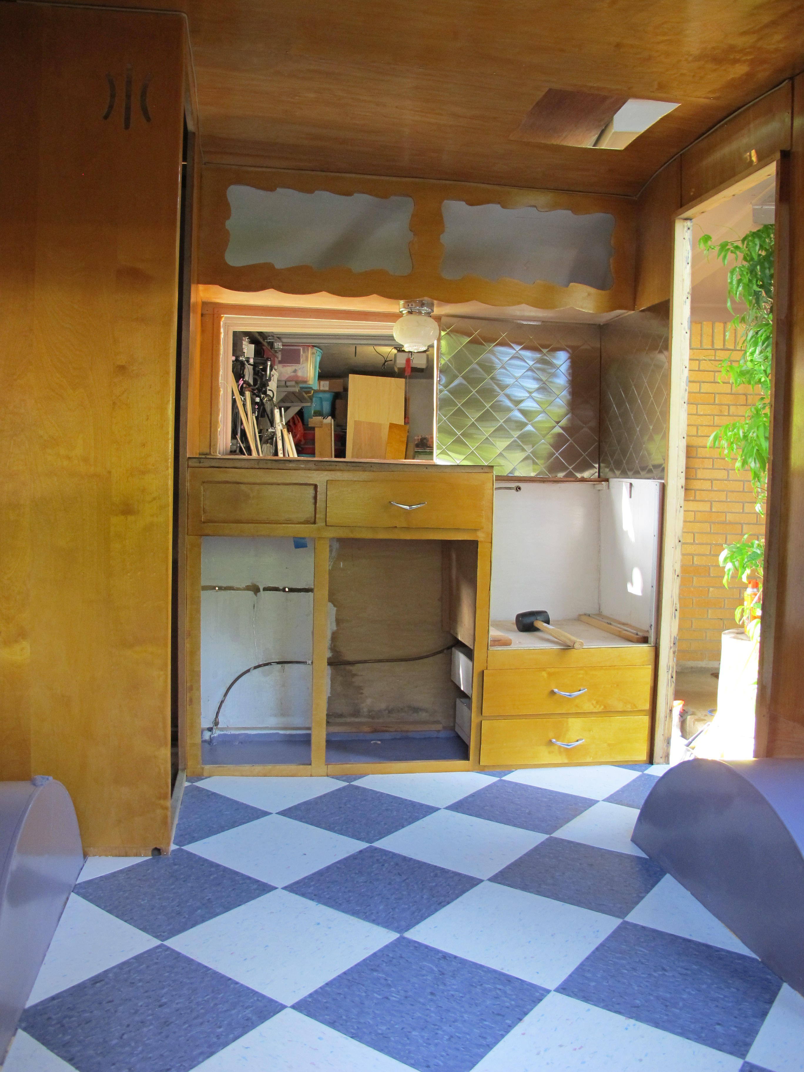 It’s that time of year again in Houston, the time when you must be crazy to work outside all day.  It was ONLY 90 degrees today, and by Houston standards that’s not too bad, however I was sweating bullets most of the day and my neighbor stopped by to inquire how in the world I could stand to be outside.  What can I say, I’m not going to let a little heat get in the way of my camper obsession!  I even had a random guy stop by today to ask what I was doing.  The first thing he says is, “What is that, an Airstream?”  Why is it that the only vintage camper most people can think of is an Airstream??  I love Airstreams, don’t get me wrong, but I am getting rather tired of people asking me if Junebug is an Airstream.  She looks nothing like an Airstream.  Geez.  I know I’m being unreasonable, I guess one of my vices is that I get annoyed too easily.  I’m now on a mission to educate the world of people who don’t know about vintage campers one person at a time. haha