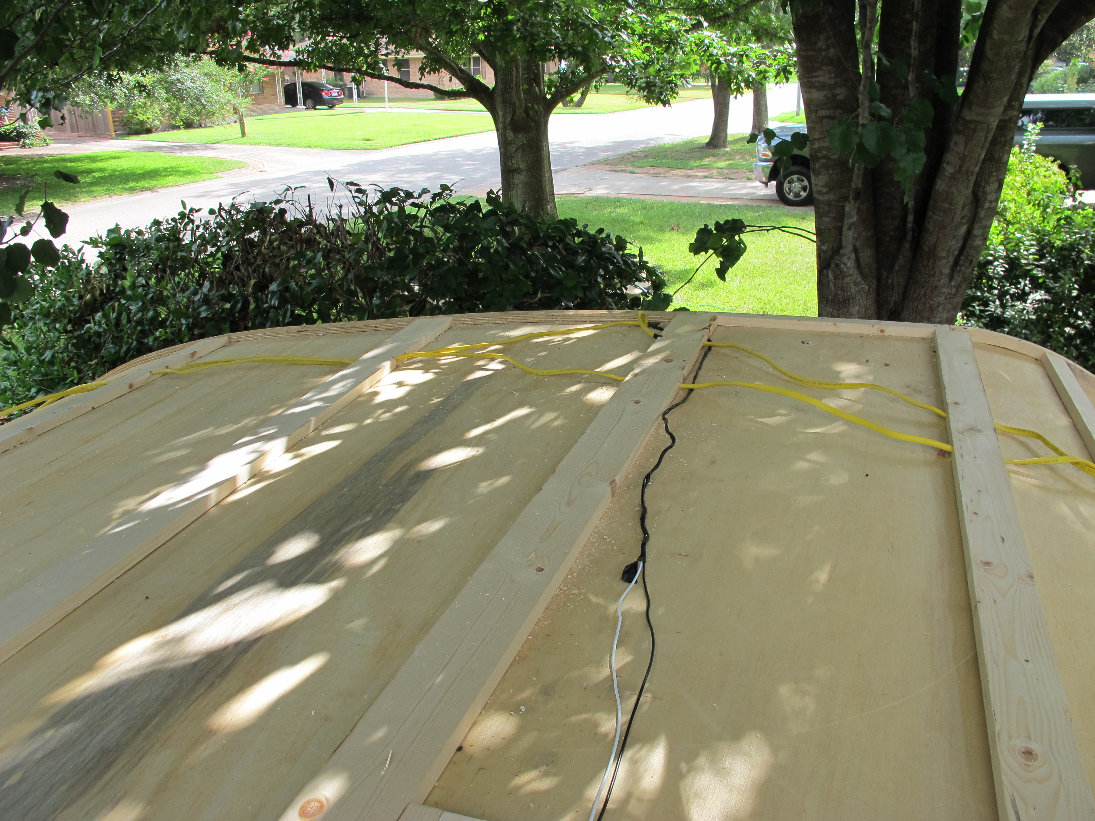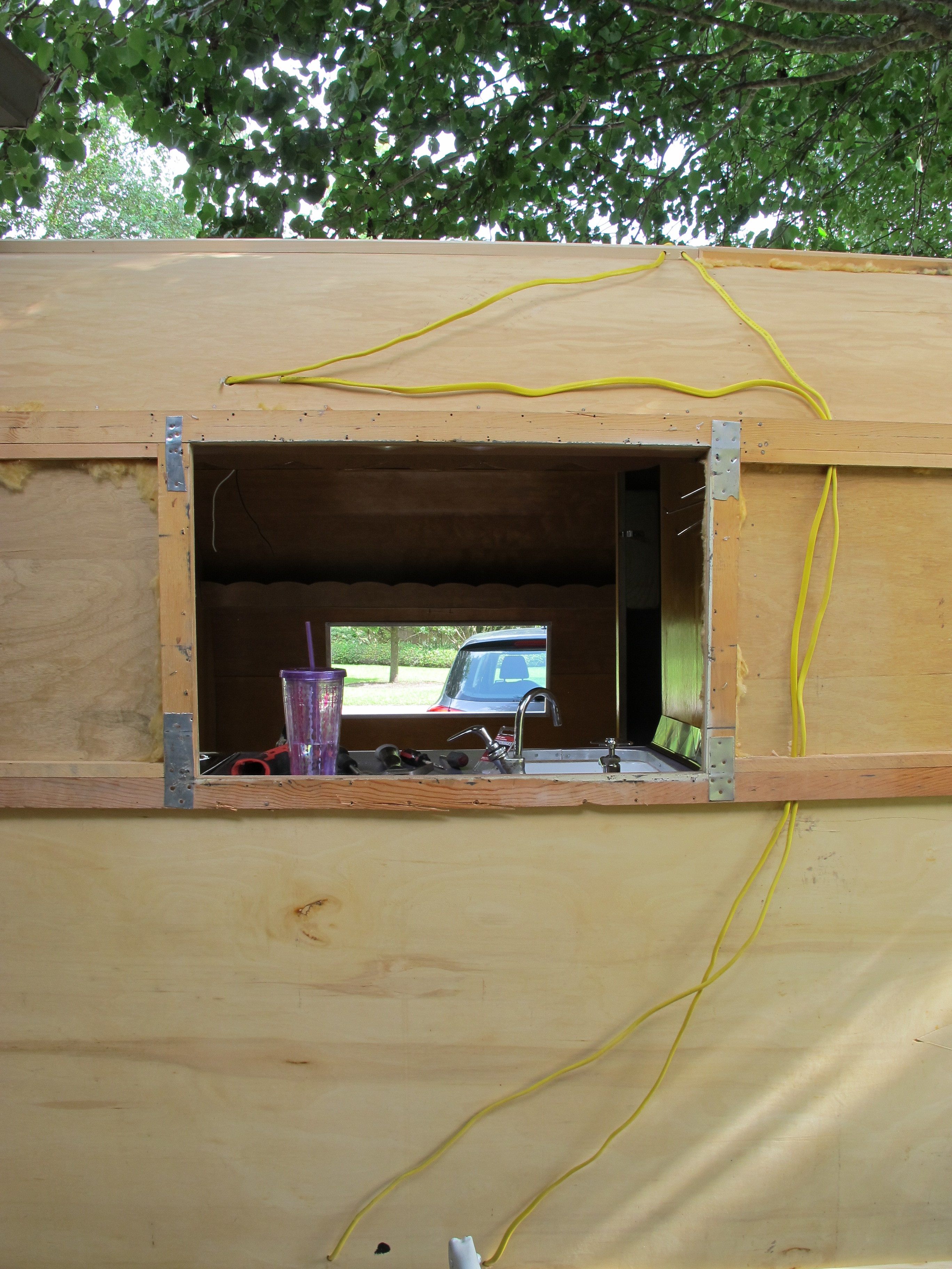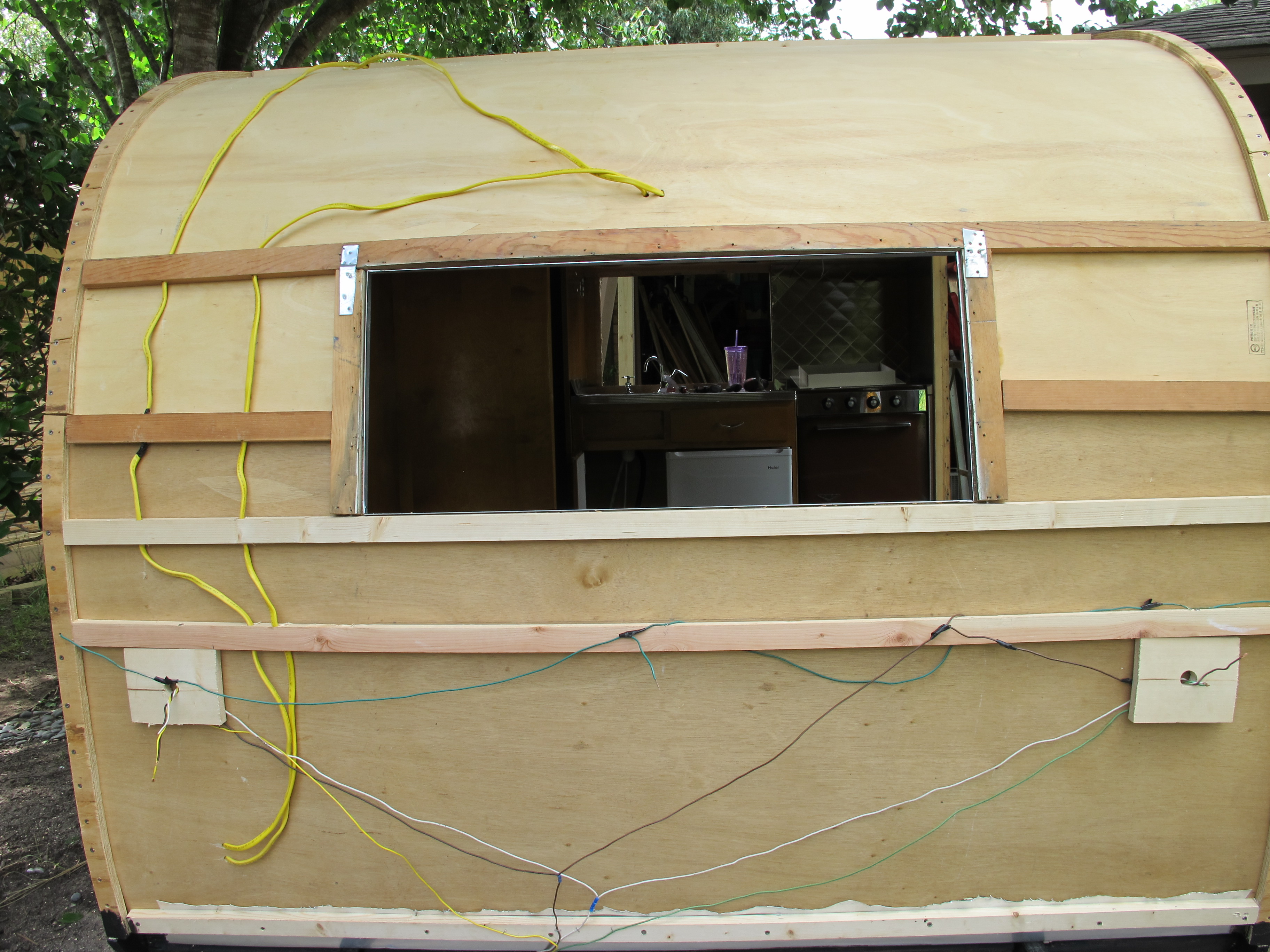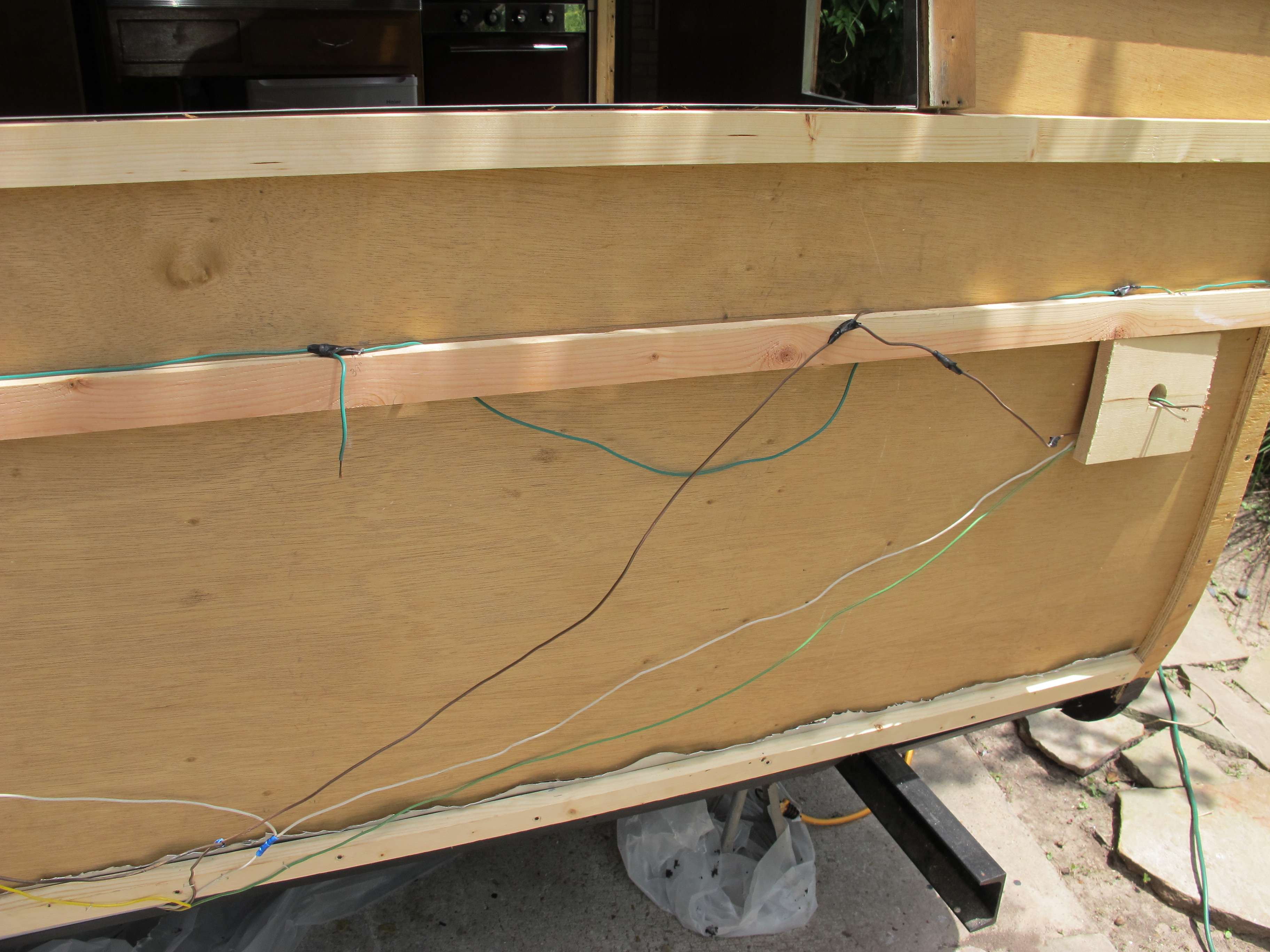 Next, I started in on the wiring.  For a short period.  Until I realized that I had better fix the frame that I didn’t measure correctly.  In my last post, I mentioned that I thought the Fantastic Vent stuck up too high.  Well, once I actually read the directions, I realized that the interior piece is supposed to be trimmed to size, so it’s not supposed to stick up that high.  And it’s narrower, so I had to take apart my frame for the vent and start over.  Now, it should work!