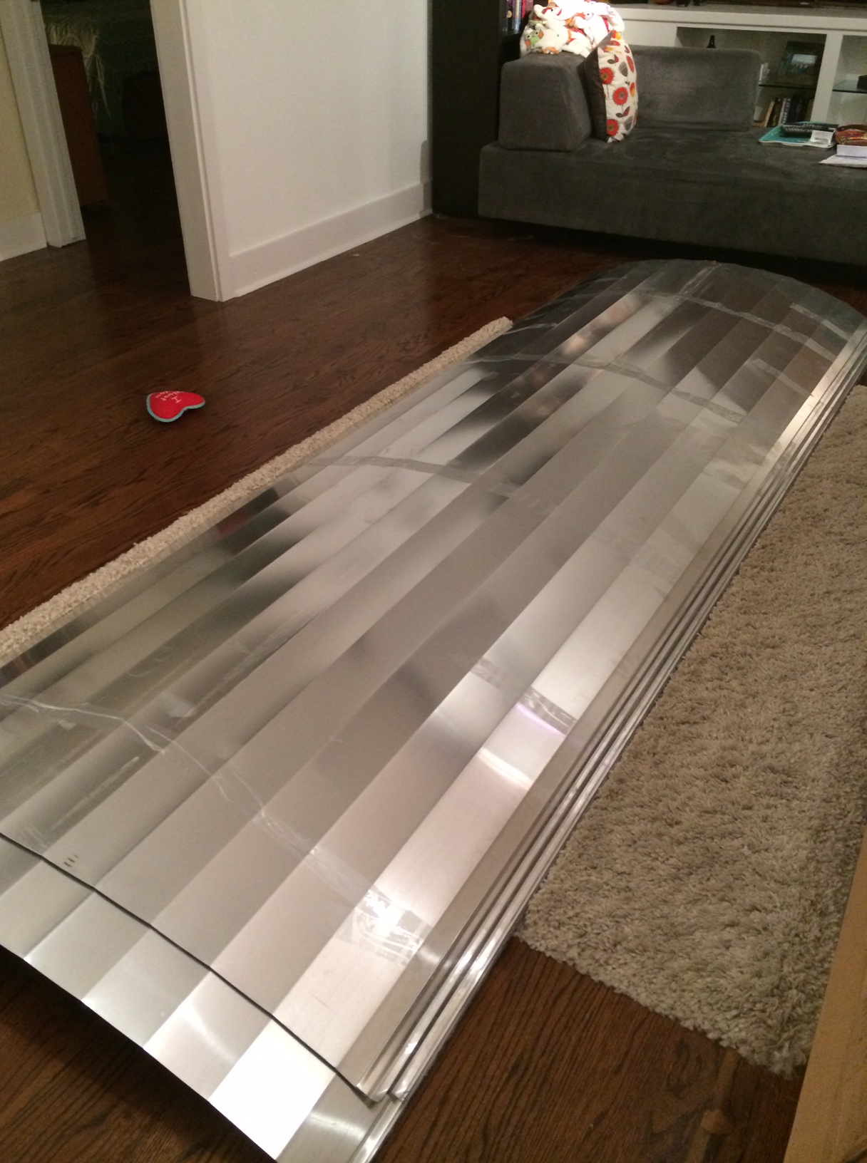 The new skin is unrolled in my living room at the moment…well the sides anyway.  I thought it would be a good idea to unroll them so they would flatten out a bit.  This is just the backside.  I took a peek under the protective film on the front side, and it was so shiny!  I’m excited about how nice it’s going to look!  Hopefully I can write again tomorrow with some beautiful pictures of the new skin!  biggrin