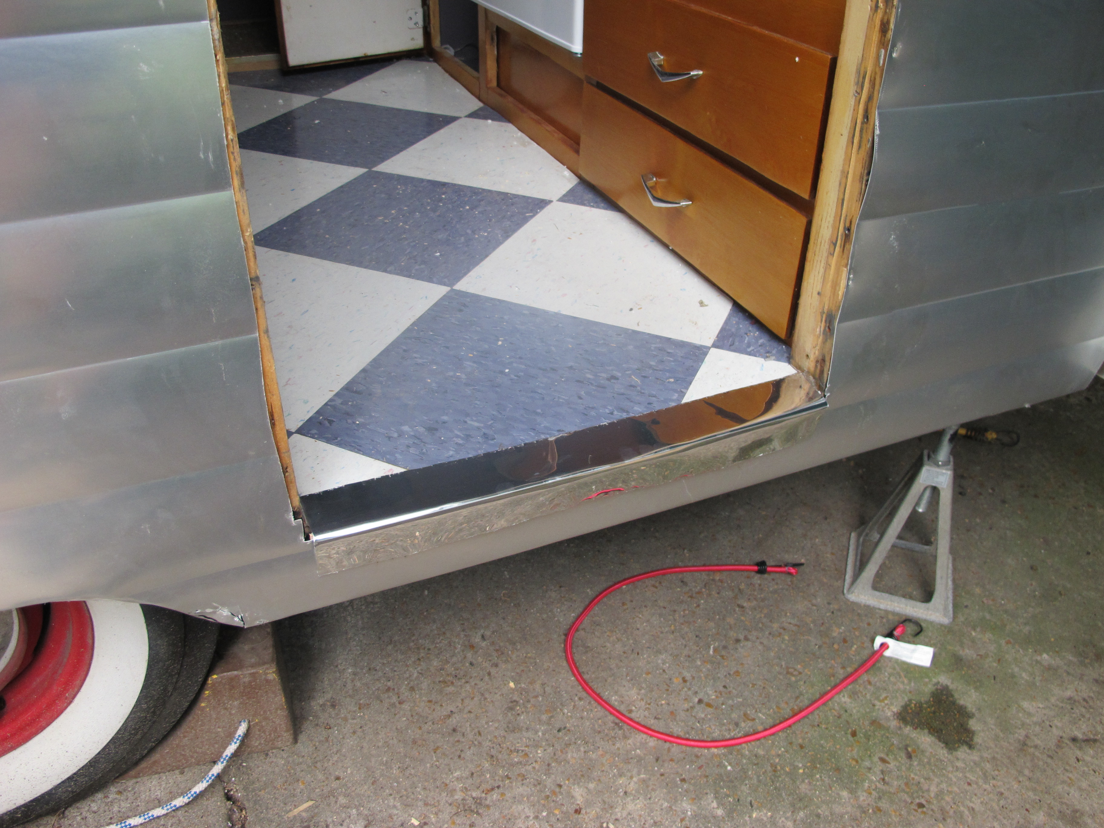 I made this little piece to go in the doorway from leftover skin. I will be doing the same for the top and sides of the door frame. I would also like to use some of the skin for the door itself, but the way it’s bent, I will likely need to take the skin to a metal shop where they have the right tools.