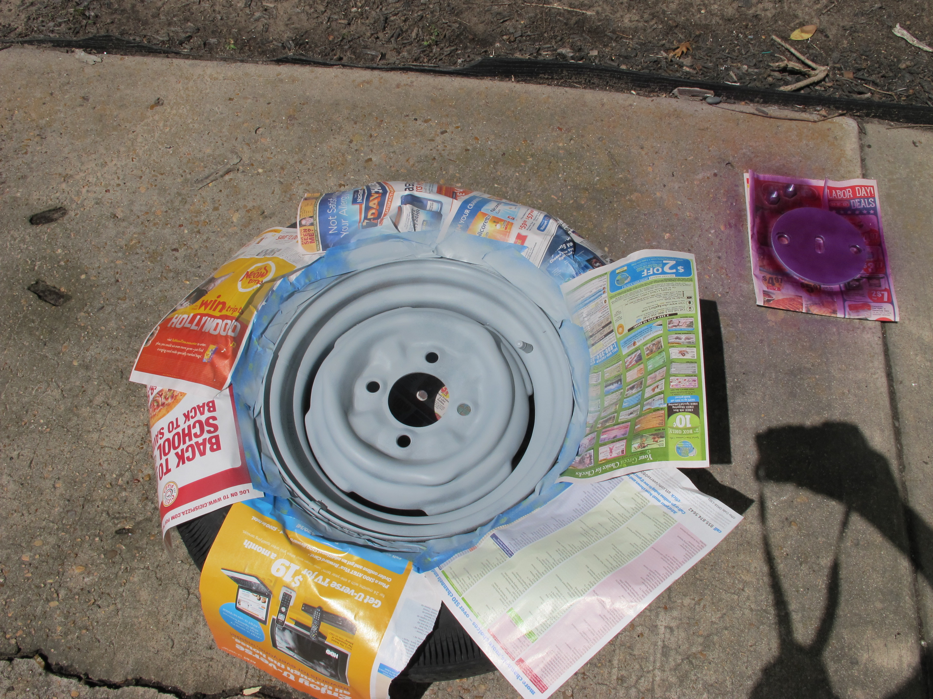 I taped off the tire so it wouldn’t get paint on it.