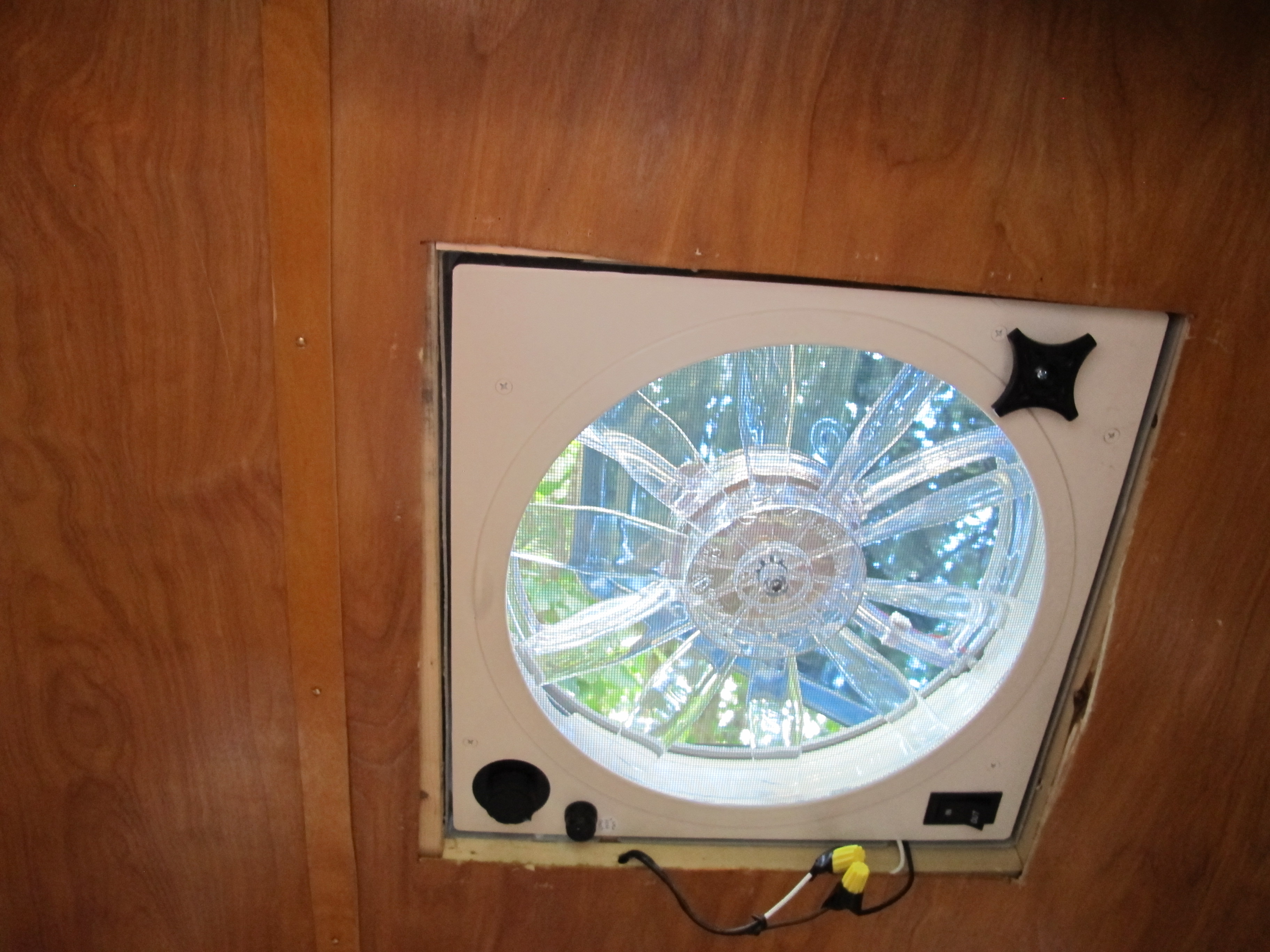 Here’s a pic with the vent hood open. It’s translucent, so it adds a little light in the camper even when closed.