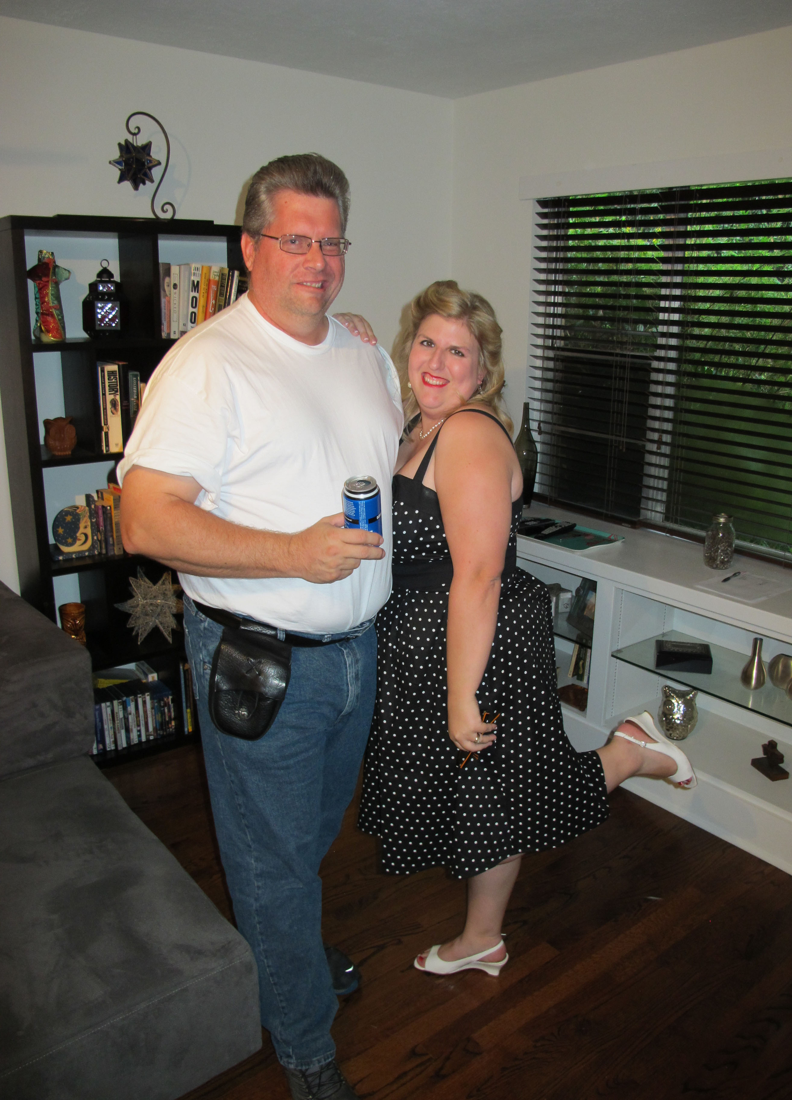 I had about 40 people show up for the party, and it was a great time! Everyone was very excited to see the finished product. I asked everyone to dress up in 1950s/60s outfits to get in the mood. I ordered my dress, shoes, and petticoat from www.pinupgirlclothing.com. I love that site! They have the cutest pin up clothes, and the quality is great.