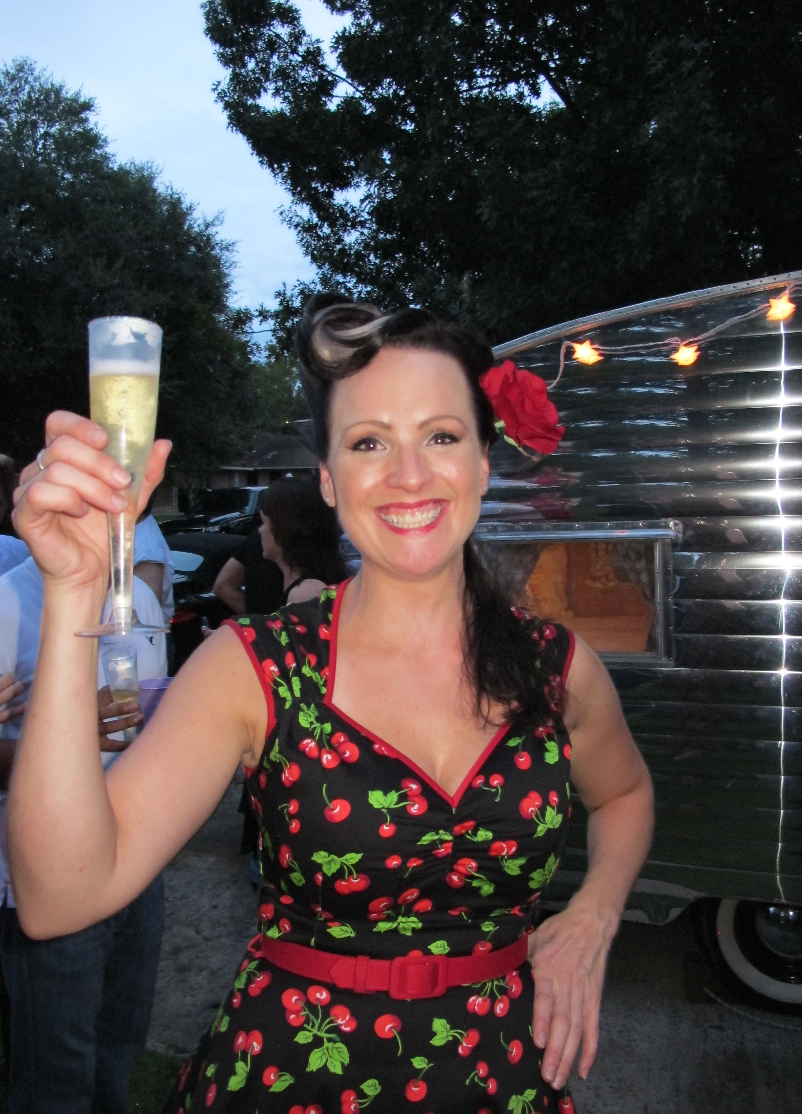 I’m a little overdue for this post, sorry! I had my unveiling party last Friday, and I think it was a huge success! The next day, I ran a 5K (Wicked Wine Run, 5K and then wine tasting at the end haha) and then on Sunday, I rested. I had a pretty busy week at work, so I am just now getting around to writing an update on here about the festivities. I will start by sharing some photos of Junebug after I got her all ready for the party. I was very pleased with how she turned out, even though I still have a few more things to complete (screen door, baggage door, trim around bottom edge of exterior). The day of the party, I hopped out of bed at 6am, eager to finish making all of the preparations. I think that’s the first time in my adult life that I’ve ever gotten up that early on my own for something non-work related. haha