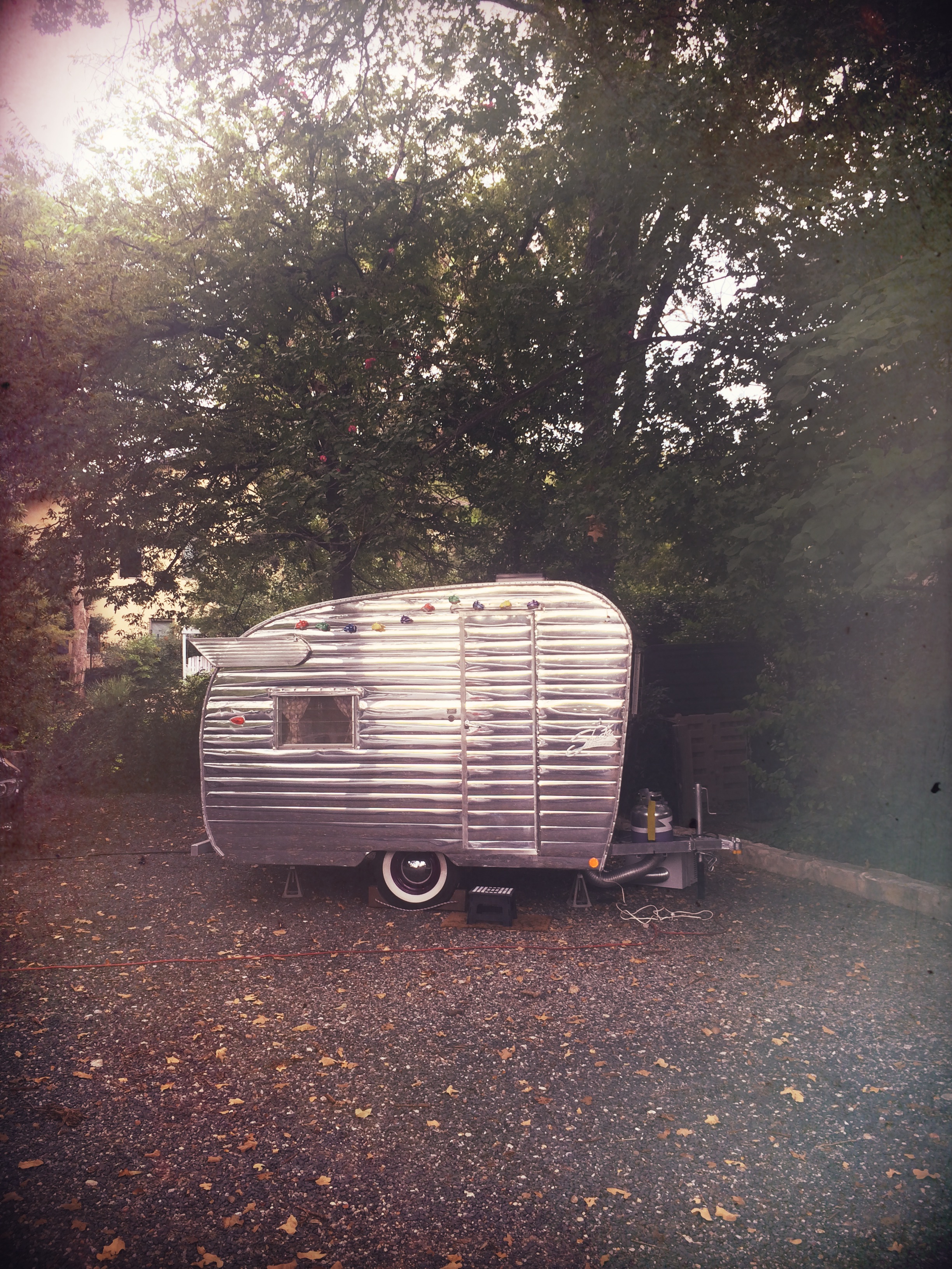 I hung the little camper lights that a friend from work gave me.  They look so cute hanging on Junebug at night and during the day!