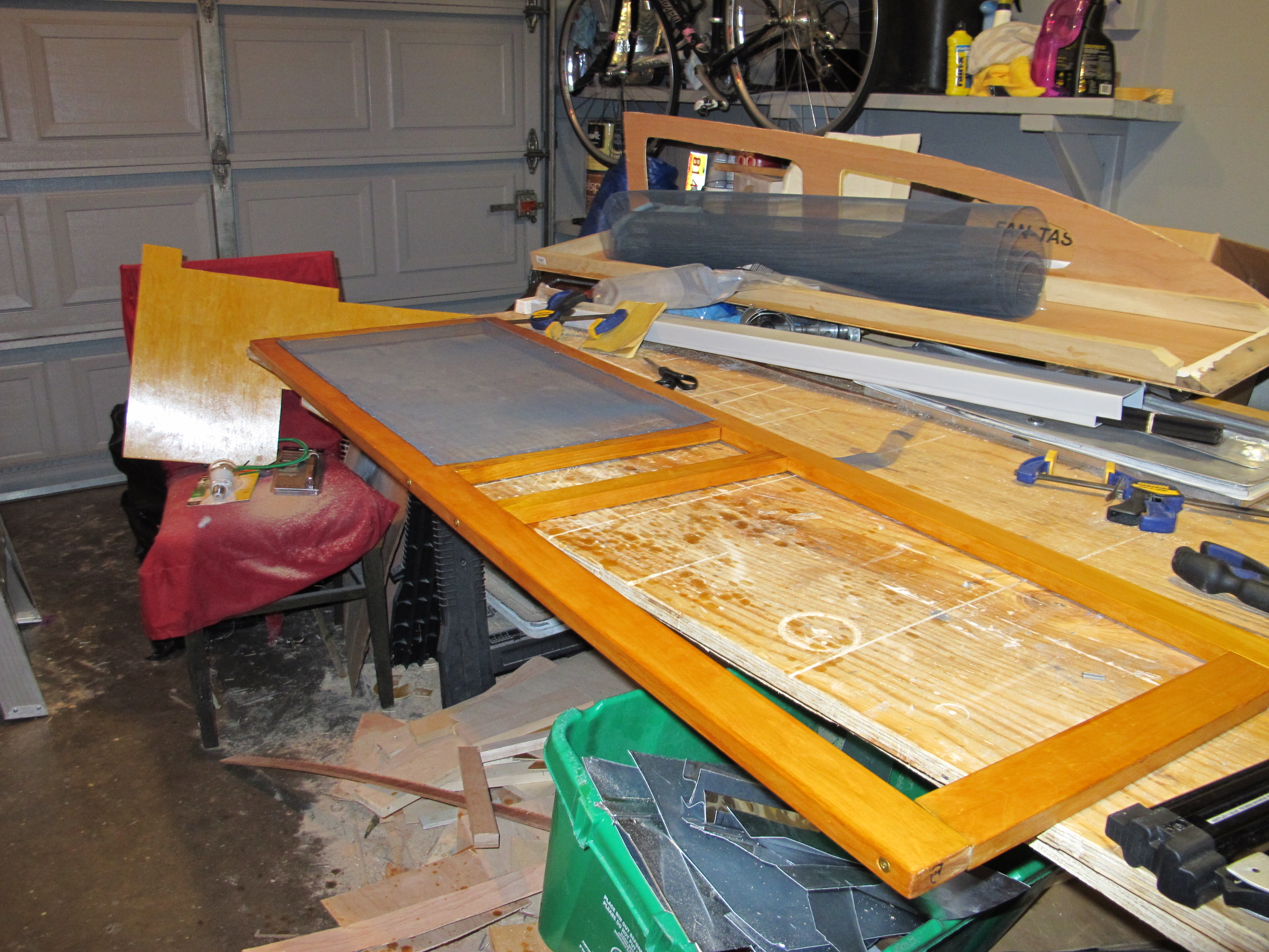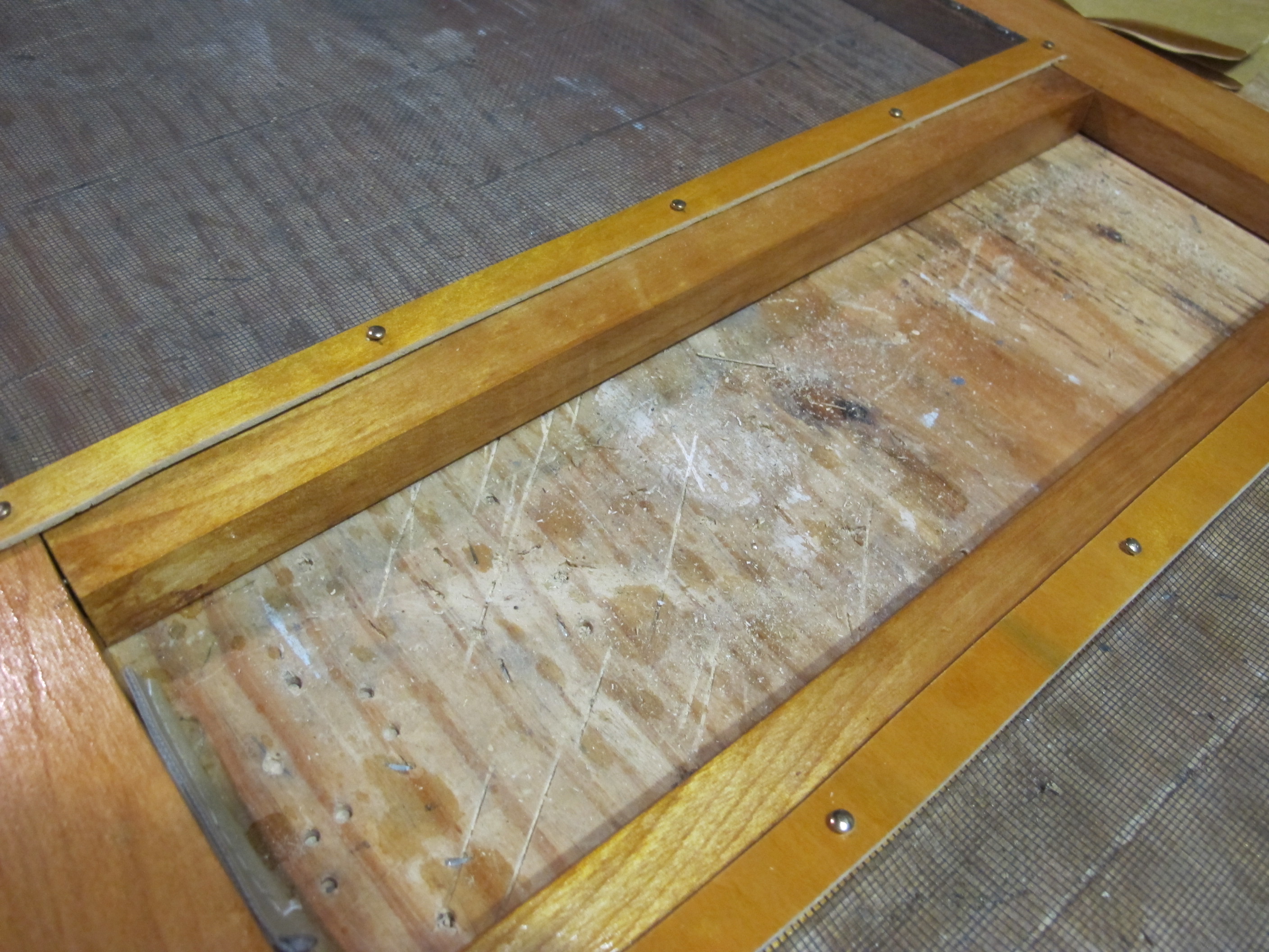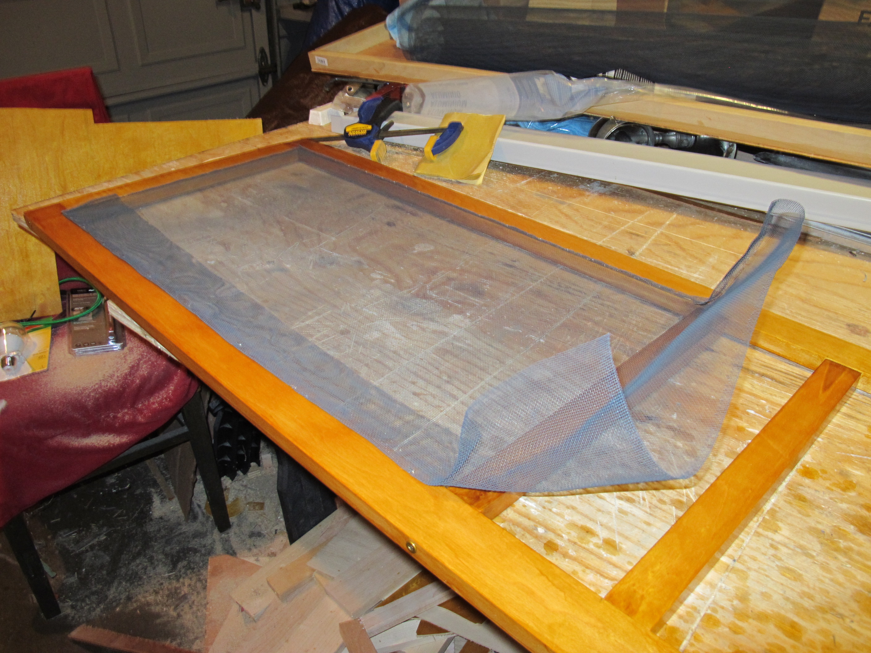 I put several coats of amber shellac on it Friday and Saturday. Today, I started installing the screen. I used tinted aluminum screen material.