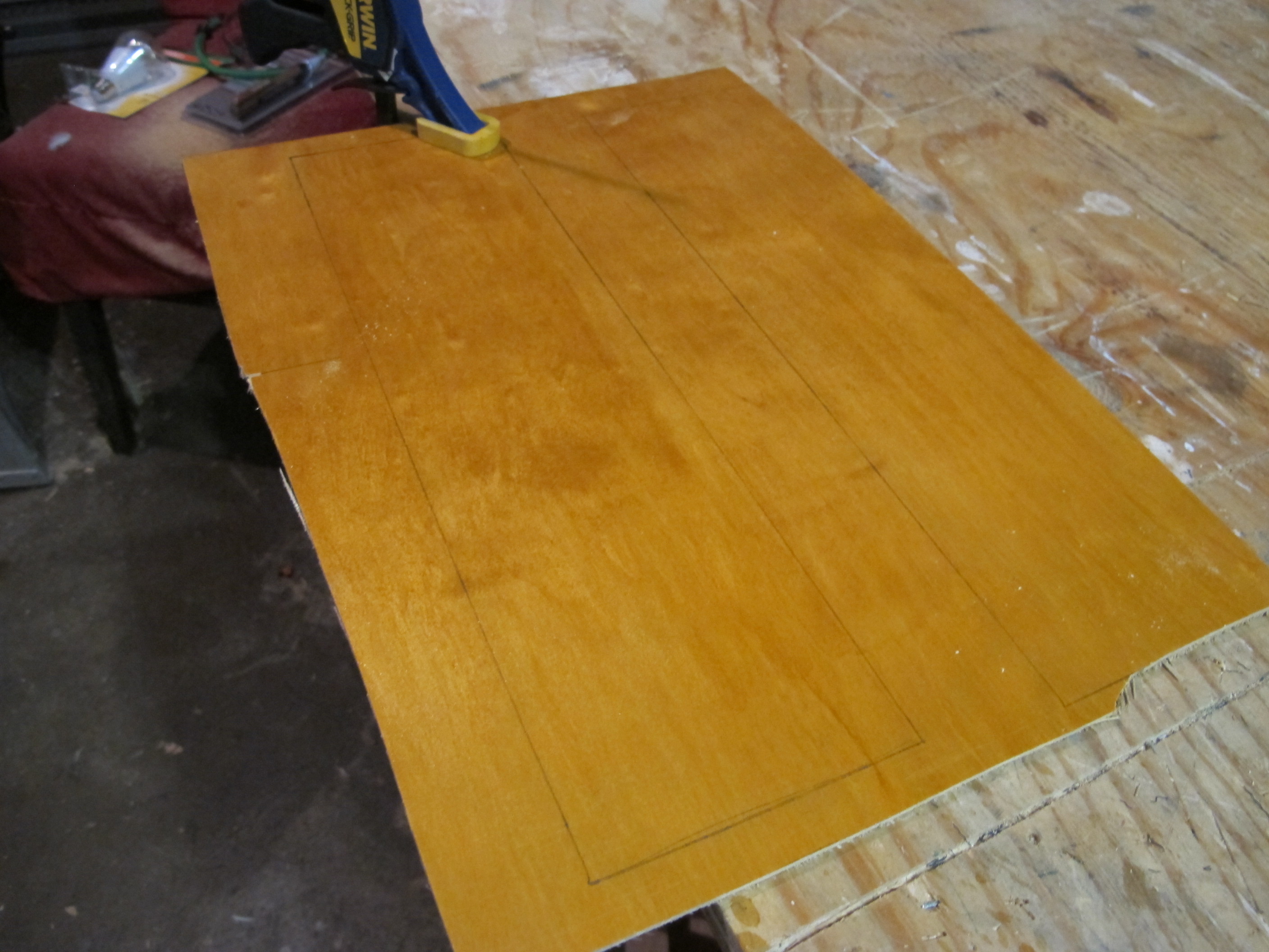Next, I cut two identical pieces of birch paneling to be sandwiched together to fill in the center of the door.