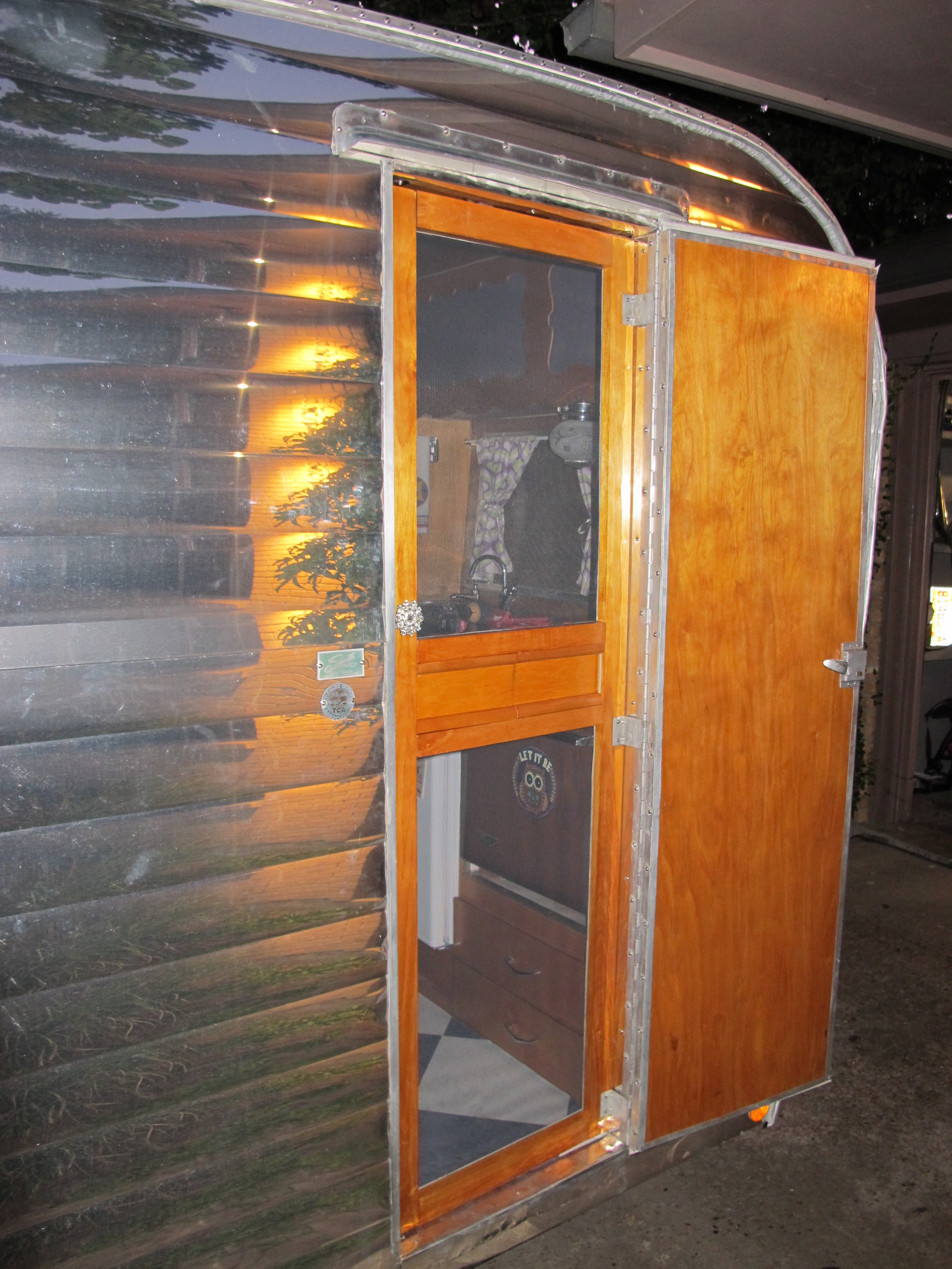 My first vintage camper rally is next weekend, so this weekend I wanted to build my new screen door so that I would have it for the rally.  It took me a few days because I could only work on it a little at a time.  I just finished and installed it this evening and I’m very pleased with the result!