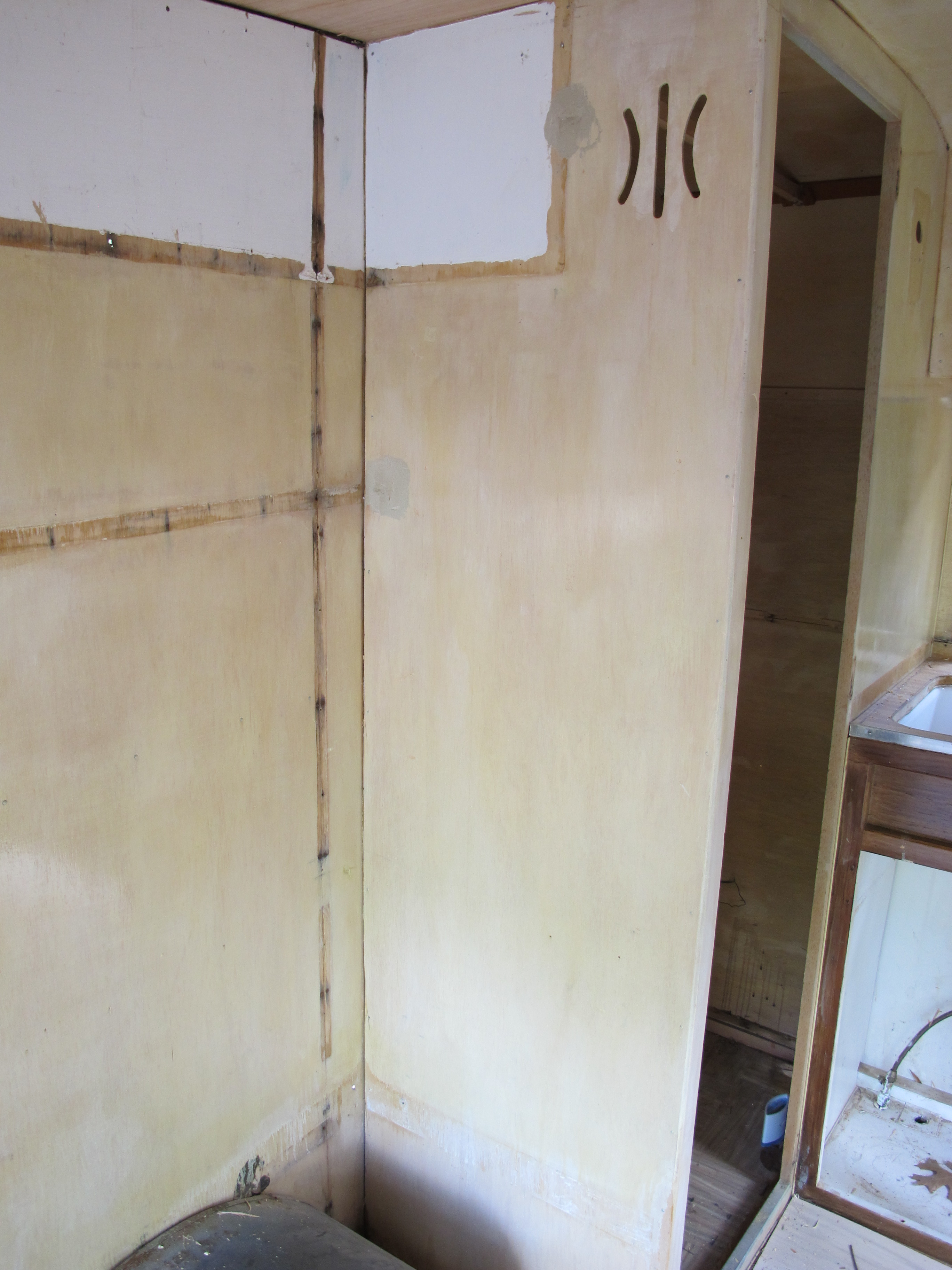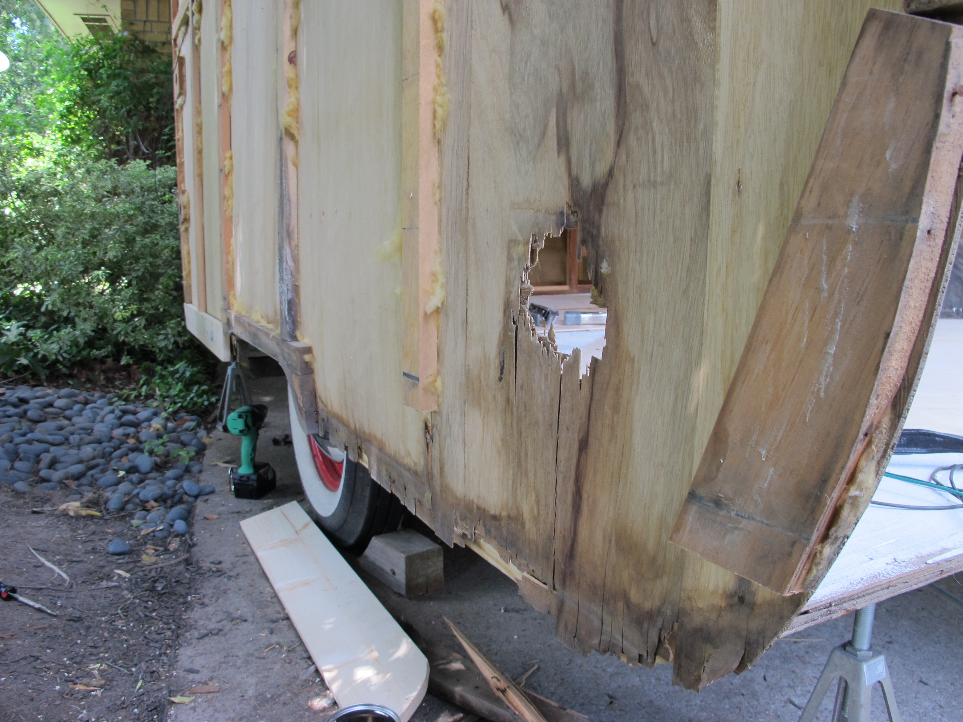 This is the curb side of the camper. I cut a new little piece here as you can see on the right to replace some additional rotted wood. Things are really starting to shape up!