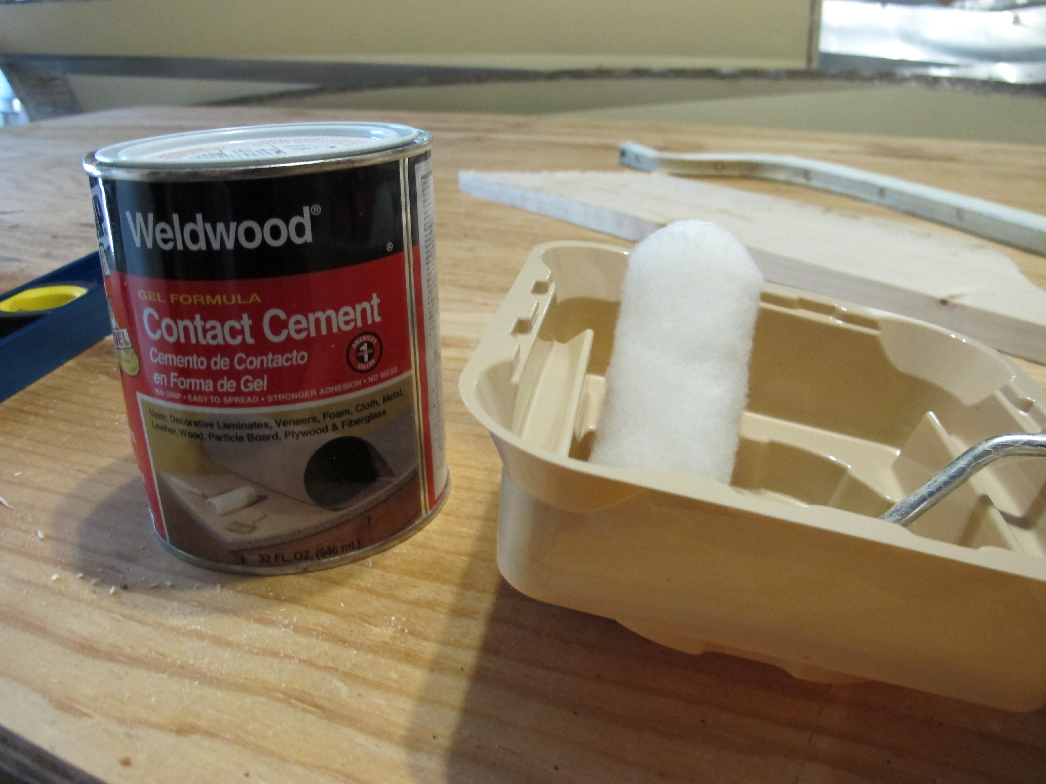 Here’s the veneer with lots of contact cement on it. I wanted to make sure I had plenty so it would hold up in this Houston heat and humidity.